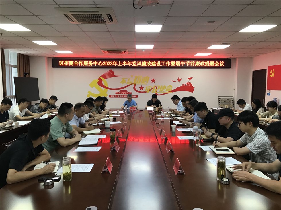 6月21日上午,区招商合作服务中心召开2023年度上半年党风廉政建设工作暨端午节前廉政提醒会议,会议由中心党组书记、主任华炬主持,驻区政府办纪检监察组、驻外招商办事处和产业集群招商分队全体成员、区招商合作服务中心全体干部职工参加了会议。