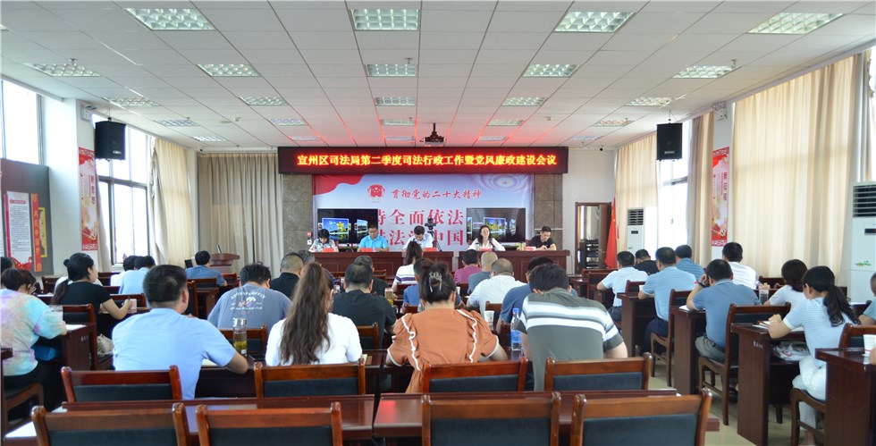近日,区司法局组织召开第二季度司法行政工作暨党风廉政建设会议。会议总结上半年工作,分析当前形势,并对下半年司法行政和党风廉政建设工作进行部署。机关全体司法行政干警、各基层司法所所长(负责人)、派驻司法局纪检监察组参会。