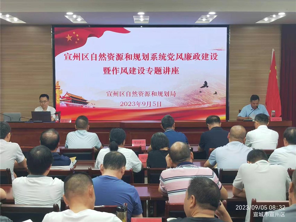 为持续深化作风建设,贯彻落实区委、区政府“三个年”活动精神,9月5日上午,区自然资源和规划系统党风廉政建设会议暨作风建设专题讲座在局五楼会议室召开,局党委书记、局长冯正华出席会议并讲话,局领导班子成员、区纪委监委驻局纪检监察组全体成员、局属二级机构及各基层站所负责人、机关各科室负责人、各党支部书记参加会议。