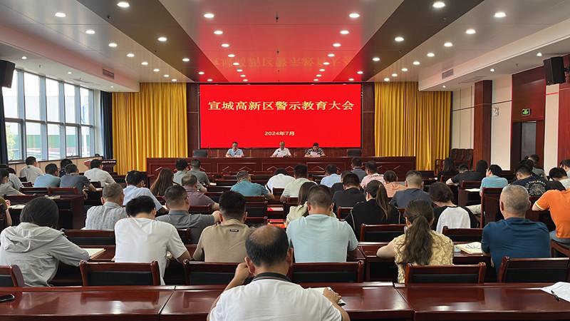 为进一步推进党纪学习教育,强化党风廉政建设,增强廉洁自律意识和防腐防变能力,2024年7月16日,在高新区管委会二楼第一会议室召开宣城高新区警示教育大会。管委会全体干部职工,各派驻机构所有人员,高新投公司和综保区公司全体职工共99人参会。